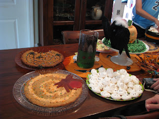 One of the tables with appetizers. The spiders really enjoyed this dip.