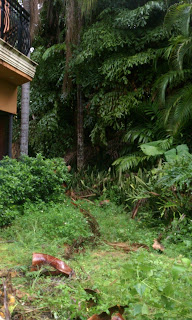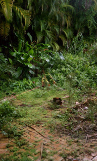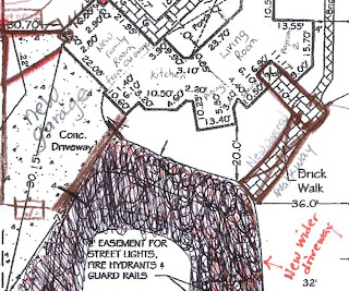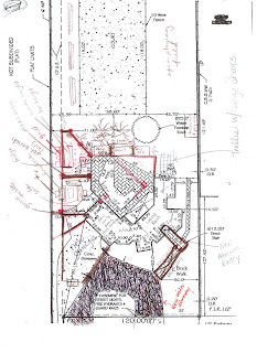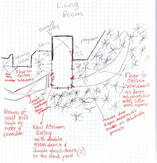 In the photo above, the area where the branches of the plants almost touch each other is where I'd like to build the new entrance to the house. The current entrance is tucked away around the side of the house.
