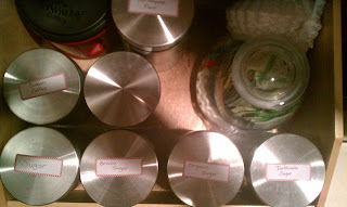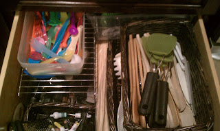 I'm excited about the new house and anxious to start working on all the little and big things we must do to it. I can't wait to move. Since I can't move yet and we have to wait, I am using my anxiety for good rather than evil...I'm either "nesting" or in a "cleaning and organizing frenzy." I'm not sure which it is, but for over two weeks, I've been a bit out of control. I am losing sleep and actually preferring to organize cabinets and drawers rather than getting my essential hours of sleep every night.