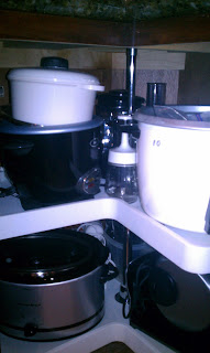| This is a Lazy Susan in a corner cabinet. I use it for my appliances. It was very messy before. Now everything has a place flat on the stand. |