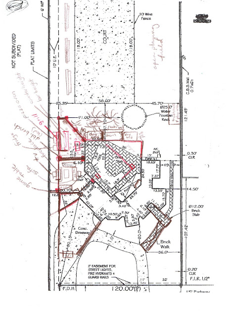 The image below is my interpretation of ideas I have for transforming the outdoor living area. The area closest to the bottom of the page is where the existing garage is today. I hope to remodel that area and make that a family room with doors that open completely to the outdoors on two walls (one that faces the pool and the other that faces the new outdoor area).